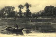 au pied du château jusqu'à l'établissement. "De l'autre bord, où un bac aussi fonctionne amenant sans cesse les gens de Croissy, le bras rapide, plein de tourbillons, de remous, d'écume (déjà) roule avec des allures de torrent". |