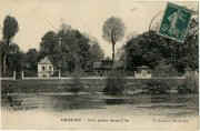 la berge côté Croissy, vers le centre de l'île. Les belles villas blanches se devinaient à travers, la charmille devant le fleuve qui glissait rapidement. Brusquement, arrivés au golf, nous étions sur le territoire de Croissy , et la vue surplombant les deux rives était superbe |